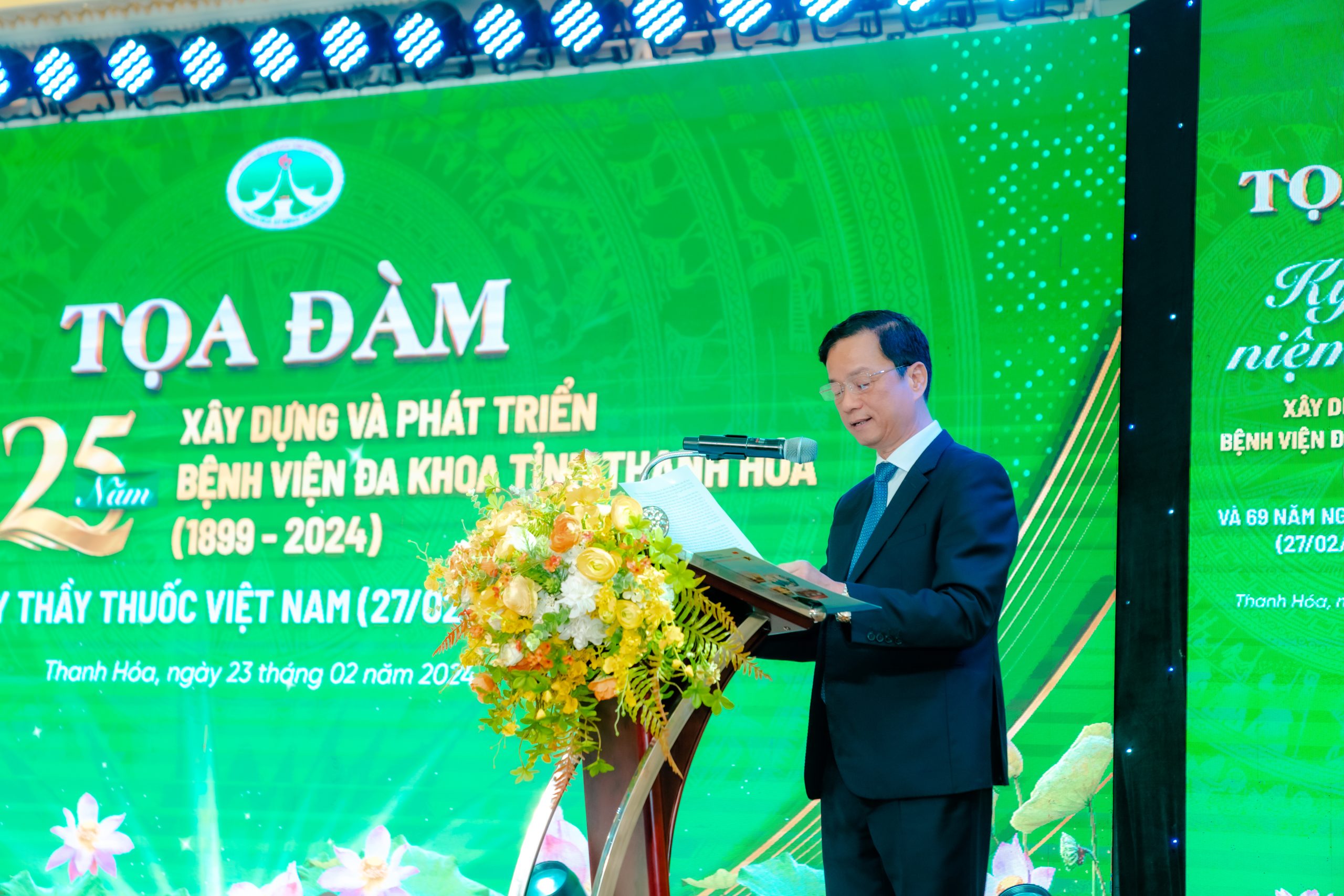 Phát biểu tại buổi lễ, Phó Giám đốc Sở Y tế Lê Văn Cường ghi nhận, biểu dương những đóng góp của các thế hệ cán bộ, thầy thuốc Bệnh viện Đa khoa tỉnh Thanh Hoá qua các thời kỳ.
