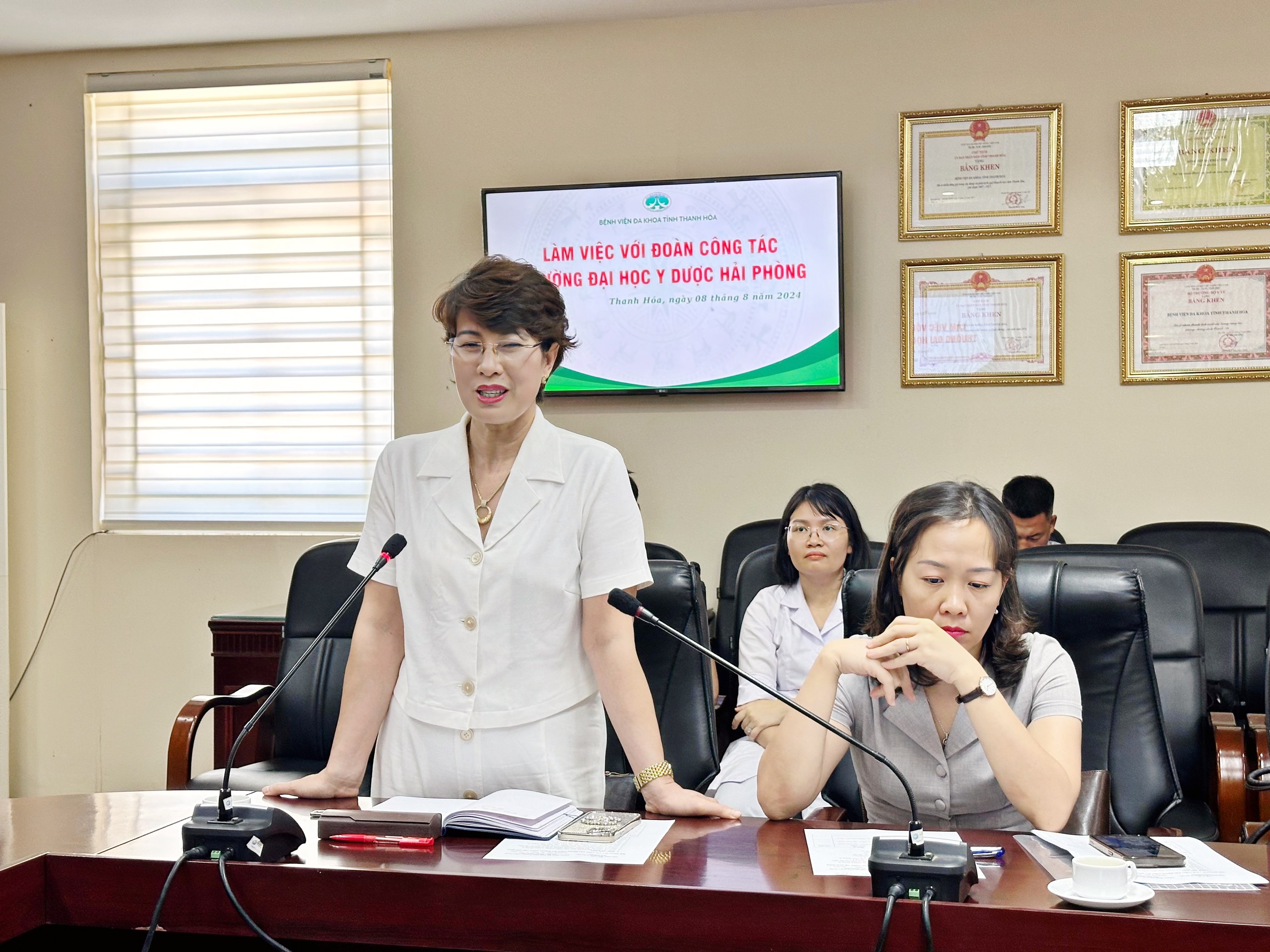 Gửi lời cảm ơn tới sự quan tâm, đón tiếp của Ban lãnh đạo Bệnh viện, PGS.TS Đinh Thị Thanh Mai – Phó Hiệu trưởng Trường Đại học Y dược Hải Phòng khẳng định đây sẽ là cơ hội tốt để các sinh viên của nhà trường được trải nghiệm thực tế, trau dồi kiến thức y học, giúp công tác đào tạo y khoa gắn liền hơn với thực tiễn của ngành. Hy vọng thời gian tới, Bệnh viện và nhà trường sẽ tiếp tục hợp tác chặt chẽ hơn nữa để việc đào tạo sinh viên ở đa chuyên ngành sẽ được đến thực tập tại Bệnh viện Đa khoa tỉnh Thanh Hóa.